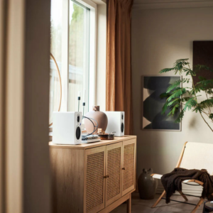Of course, there’s also the Bluetooth connection if you just want to listen to some sweet tunes. Just pair your phone, your tablet, or any other device, and you’re good to go. The high-quality Bluetooth aptX HD connection gives you impressive clarity; it’s basically as good as CD quality. There are also a couple of plug-and-play ports for your record player, an external streamer, or whatever you want. Speaker- and power cables are included in the box – all you need to do is find a power outlet.