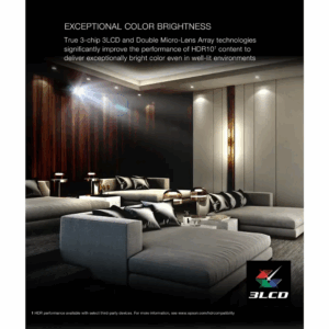 Developed specifically for creating immersive big screen entertainment experiences with an unprecedented level of picture brightness, color and detail, the Epson QL3000 produces a stunning 4K HDR picture up to 300″.