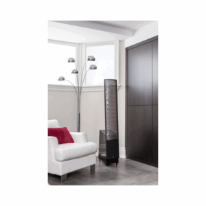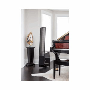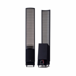 ElectroMotion ESL‘s XStat electrostatic MicroPerf panel is housed within a radical aluminum and composite AirFrame™ similar to those found on MartinLogan’s flagship products. AirFrame technology rigidifies the electrostatic panel without obstructing playable surface area or interfering with ambience enriching dipole sound radiation. At the same time, an AirFrame provides electrical and acoustical isolation, minimizing intermodulated distortion caused by vibration and resonance while enhancing imaging, low-level sonic detail, accuracy, and efficiency. MicroPerf design optimizes the individual holes of The EM-ESL‘s electrostatic panel. MicroPerf design substantially increases diaphragm radiating area, compared to early generations—without compromising structural integrity. The resulting increase in output capability and efficiency allows The EM-ESL‘s panel to enjoy a substantial leap in bandwidth and dynamics without growing larger. For example, The EM-ESL‘s XStat electrostatic panel features 129 square inches of sound radiating surface on both the front and back and a sensitivity of 91dB into 6 Ohms. The Aerius, well received its day, only had 93 square inches and a sensitivity of 89dB into 4 Ohms.