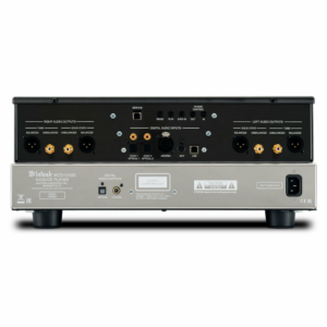 A twin laser optical pickup assures optimal reading of all common disc types. The disc transport has a precision die-cast aluminium tray that provides smooth and quiet disc handling, while an advanced digital servo provides fast, quiet and accurate operation. The disc’s audio data is read at twice the normal rate insuring better disc tracking and error correction processing. Power Control and data ports allow for seamless Integration with other McIntosh system components.