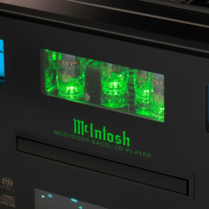 The MCD12000 is wrapped in classic McIntosh styling. The bottom part of its chassis is made from stainless steel that is polished to a mirror finish; the top part is made from hairline brushed black Titanium stainless steel that matches the C12000 and brings an enhanced degree of richness and refinement to your home audio system. The front features our timeless black glass panel, illuminated logo, knobs, push button controls, and custom machined brushed aluminum handles that match the C12000. On the top is a glass panel listing performance specs and a block diagram of the audio signal path. A remote control is included.