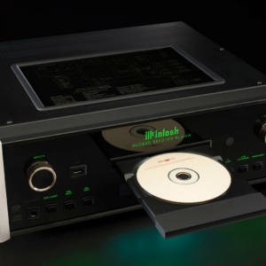 A twin laser optical pickup assures optimal reading of all common disc types, including SACD, CD, CD-R/RW and DVD-R. A new disc transport with a precision die-cast aluminum tray provides smooth and quiet disc handling, while an advanced digital servo provides fast, quiet and accurate operation. The disc’s audio data is read at twice the normal rate insuring better disc tracking and error correction processing. Power Control and data ports allow for seamless integration with other McIntosh system components.
